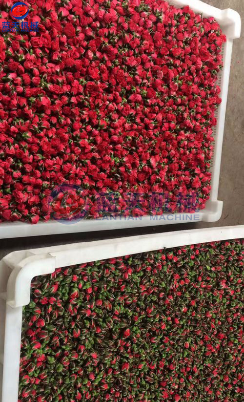 玫瑰花的商品花分為花苞和鮮花,在烘干工藝的程序上有所不同,下面我們結合實際的現(xiàn)場情況做一次整個工藝流程的介紹。